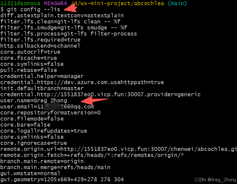 git config --lis