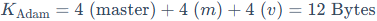 每个状态都是4Bytes,因此单参数的优化器状态一共约12Bytes: