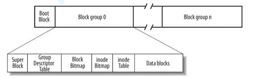 boot block:(管理操作系统启动的相关信息)在每个分区的头部,将剩下的部分划分成n个block group。