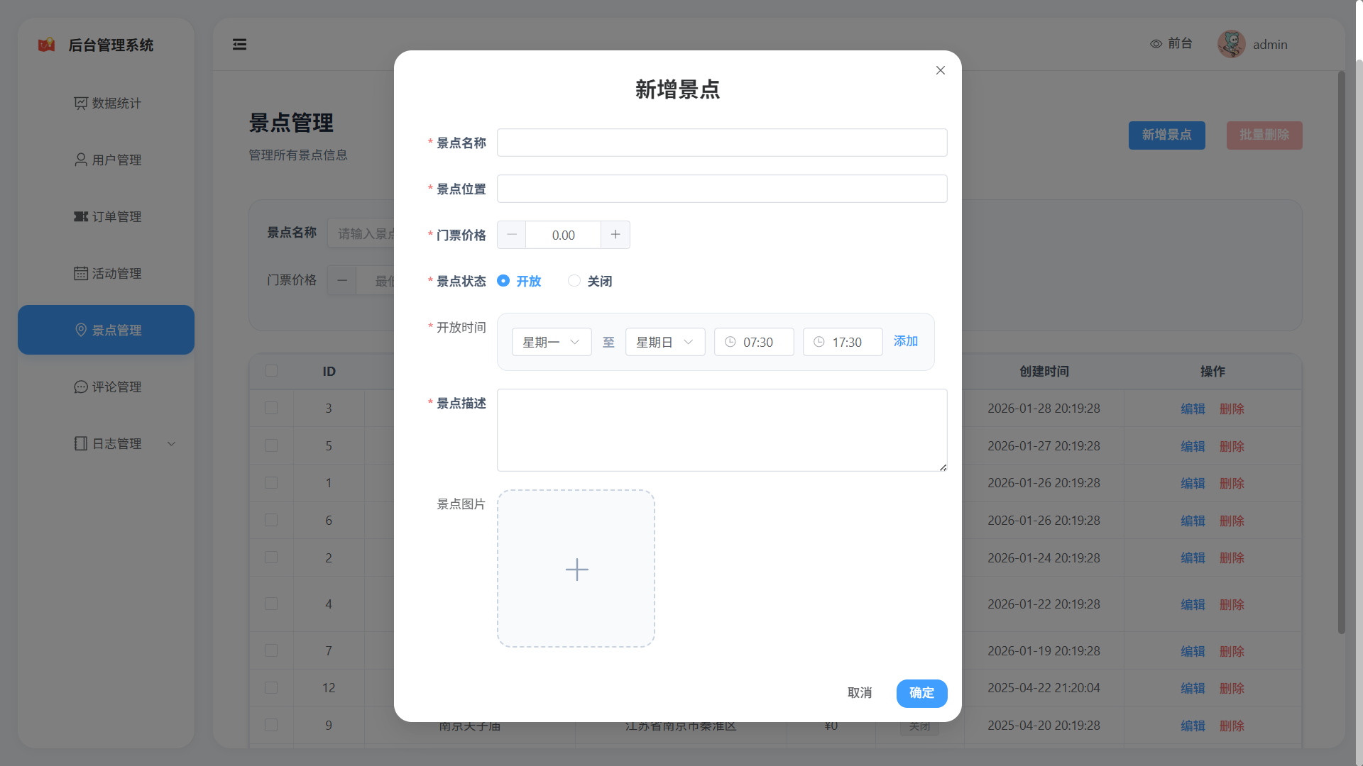 - 景区状态管理(开放/关闭状态切换)