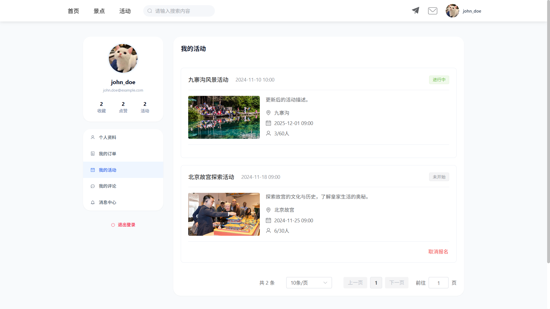 - 活动信息管理(名称、描述、时间、地点、参与人数等)