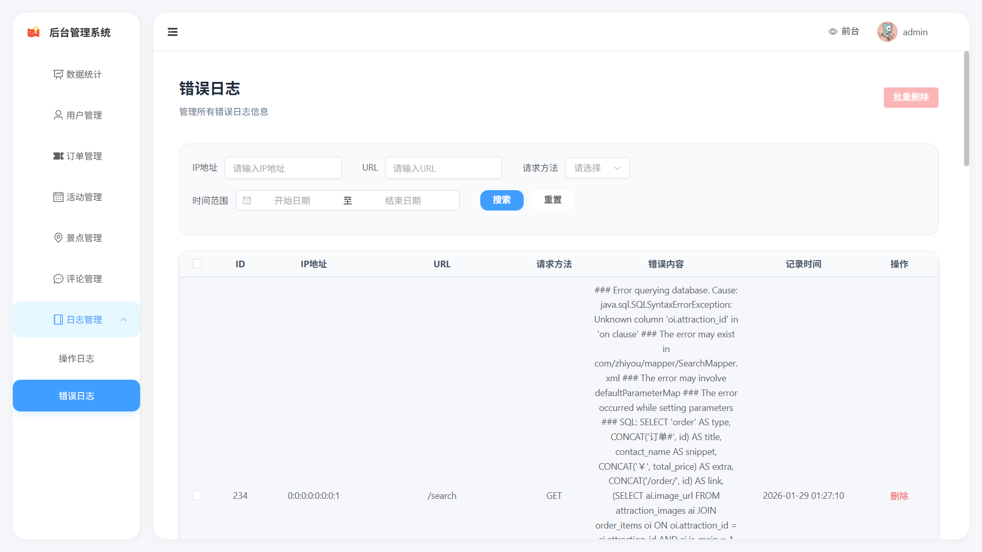 - error_logs: 系统错误日志