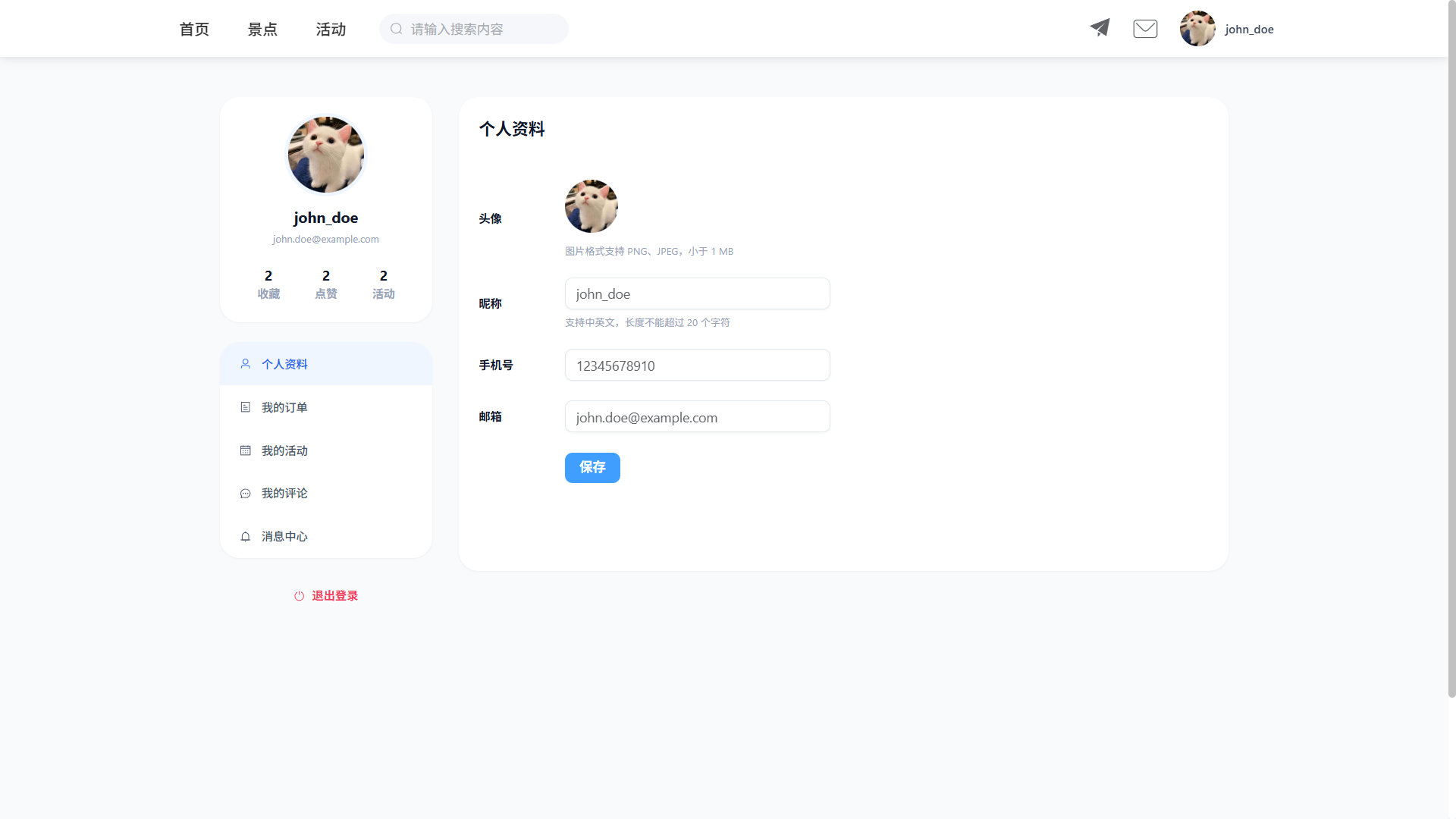 - 个人信息管理(头像上传、信息修改)