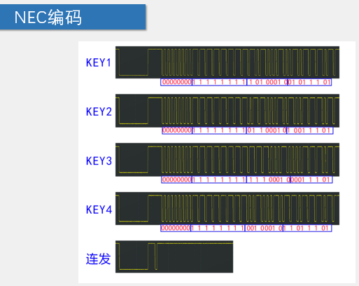 命令码:对应按键的功能(比如 "1" 键、"+" 键,每个按键对应唯一的 8 位数据);