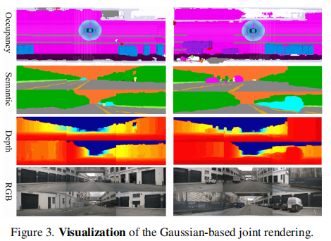 为了弥合 3D 占用率与 2D 视频之间的表示鸿沟,研究团队将语义占用率转换为 3D 高斯基元,并渲染得到多视角语义图和深度图,为视频生成提供精细的语义和几何指导。