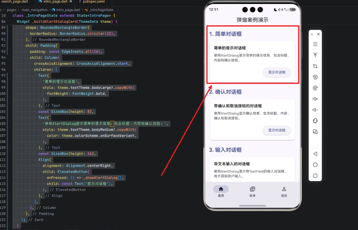 本文将基于 Flutter × OpenHarmony 的开发环境,通过一个 AlertDialog 示例卡片 ,系统讲解如何构建一个结构清晰、风格统一、可复用性强的提示对话框组件,并对核心代码进行详细解析,帮助你在实际项目中快速落地。