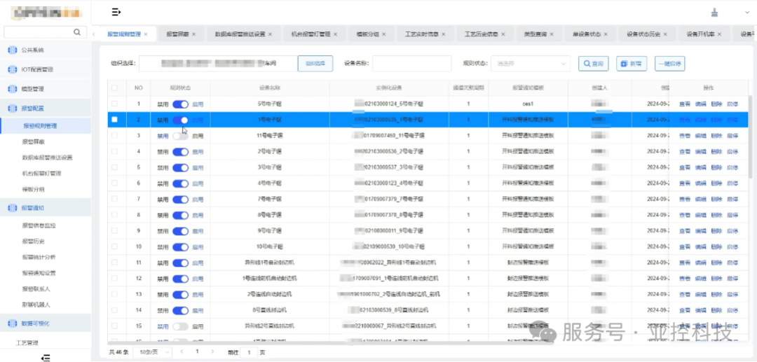 报警与通知模块:支持自定义报警规则,可选择监控对象、定义触发条件及报警级别,涵盖限值、偏差、离散、变化率等多种报警类型,实现异常情况的及时预警与通知;