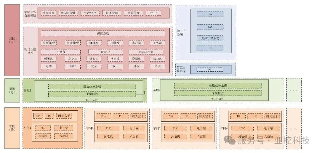 边缘端(基地层):依托工业云操作系统实现分布式数据采集与本地存储,适配各基地的生产特性,保障数据采集的实时性与稳定性;