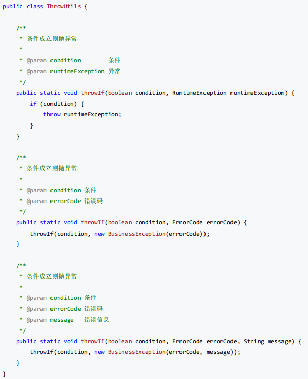 提供抛出工具(ThrowUtils)以减少业务层模板化代码,并确保抛出信息结构一致。