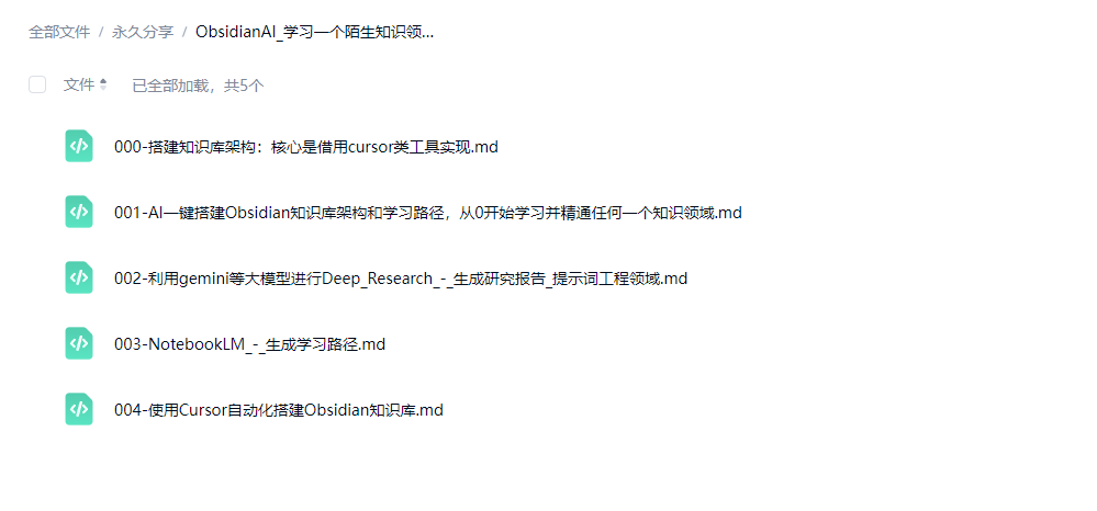通过这四步,一个纯文本大纲被全自动地转换成了一个结构严谨、层次分明、功能完备的Obsidian知识库"脚手架"。