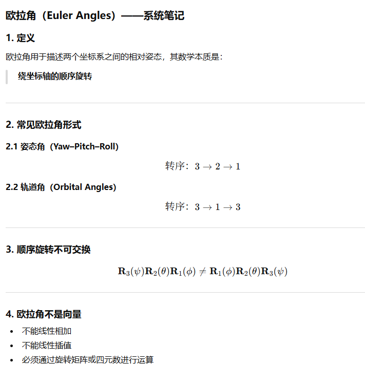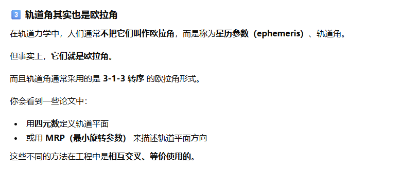 轨道姿态采用 3-1-3 欧拉角,是因为该转序与轨道的几何结构完全一致,使升交点赤经、轨道倾角和近地点幅角具有清晰的物理意义,并使轨道力学方程具有最简洁的数学形式。