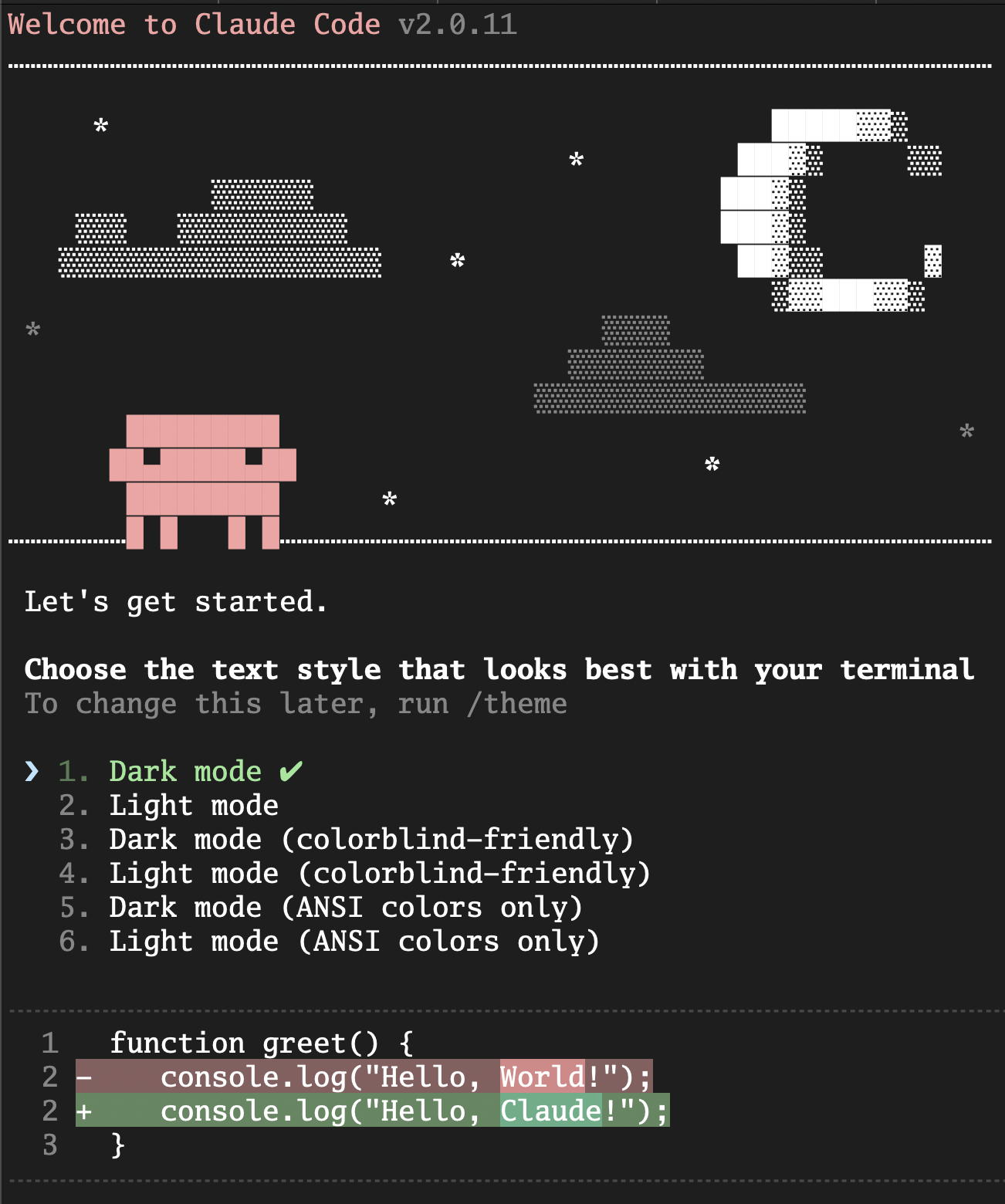 这次 Claude Code 没有让我们选择 login method,而是直接 login 成功了!敲击回车后,我们看到下一个页面: