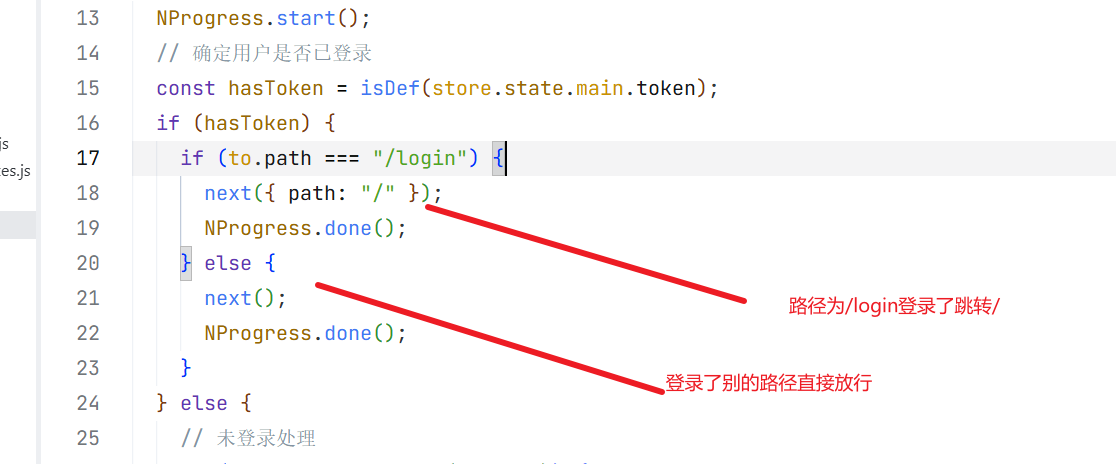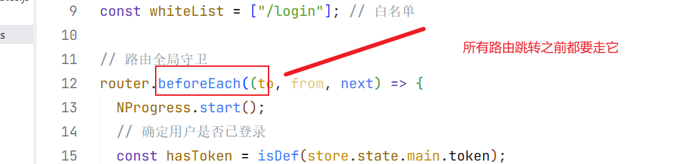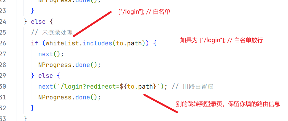 检查 to.path 这个「即将跳转的路由路径」,是否在 whiteList 这个「路由白名单数组」中,最终返回一个布尔值(true/false)。