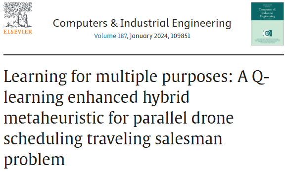 1\] Chen P, Wang Q. Learning for multiple purposes: A Q-learning enhanced hybrid metaheuristic for parallel drone scheduling traveling salesman problem\[J\]. Computers \& Industrial Engineering, 2024, 187: 109851. ### 5.代码获取 xx ### 6.算法辅导·应用定制·读者交流 xx
