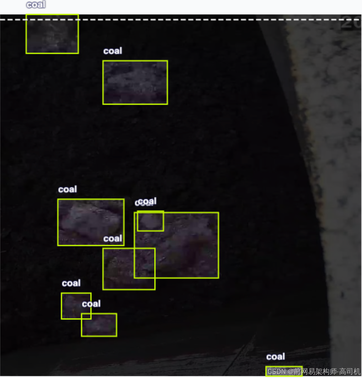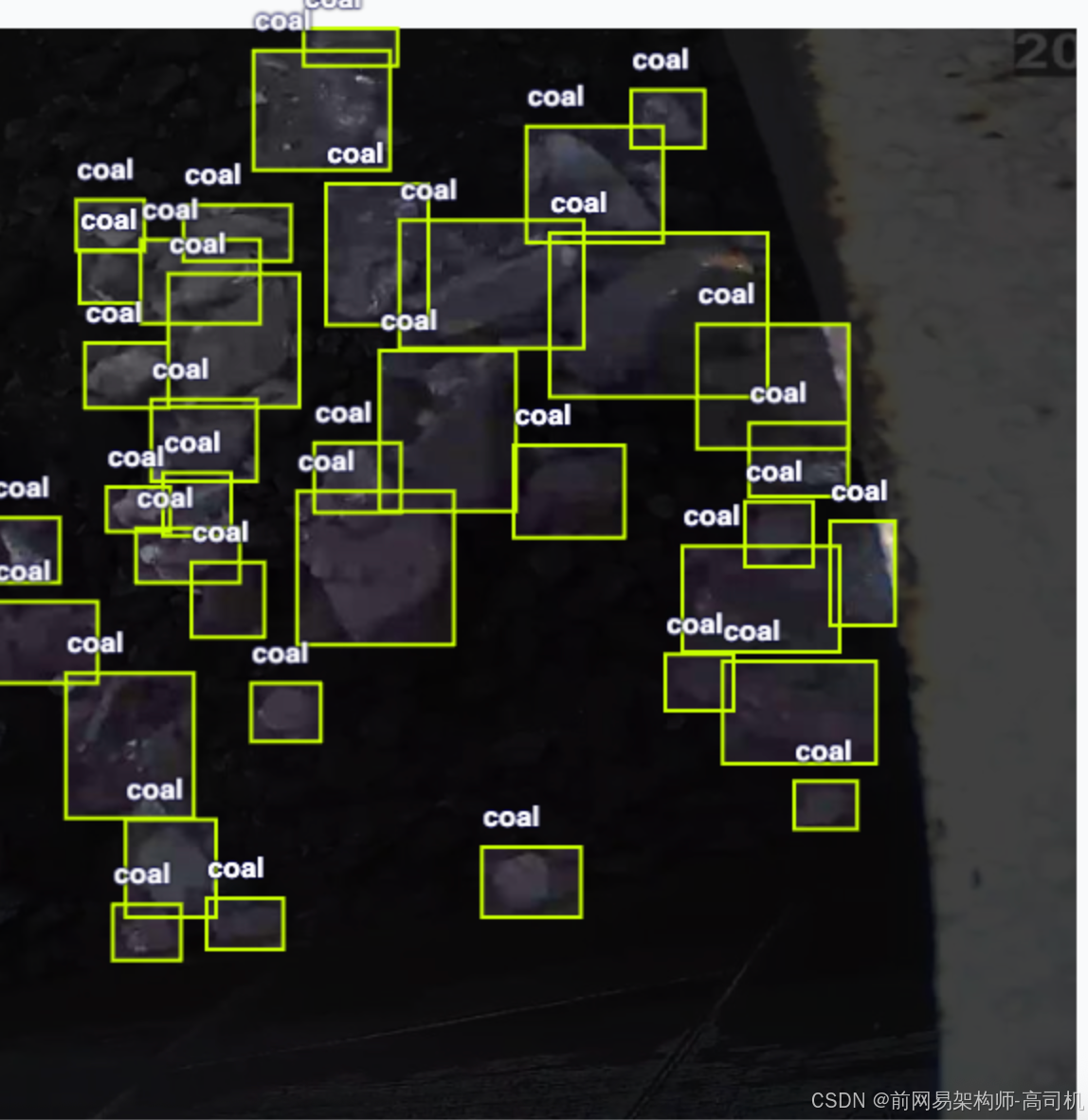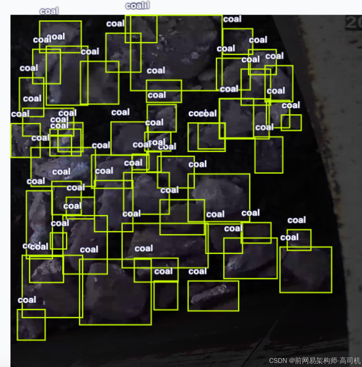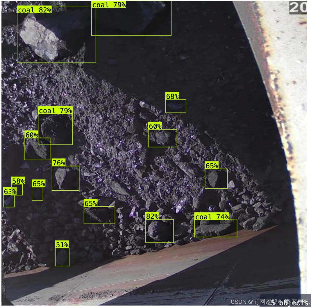 带标注信息的大块煤识别数据集,可识别大块煤,支持yolo,coco json,pascal voc xml格式,正确识别率77.6%