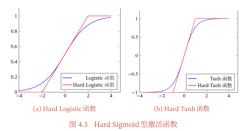 Logistic 函数和Tanh 函数都是Sigmoid 型函数,具有饱和性,但是计算开销较大 .因为这两个函数都是在中间(0 附近)近似线性,两端饱和.因此,这两个函数可以通过分段函数来近似