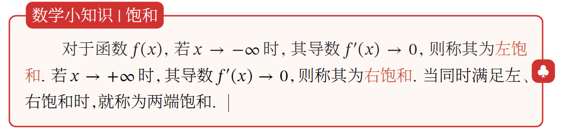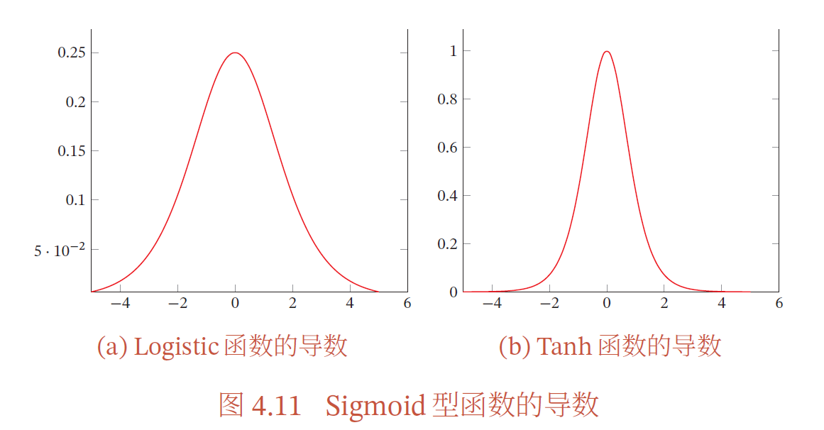 (3) 激活函数的导函数的值域要在一个合适的区间内,不能太大也不能太小,否则会影响训练的效率和稳定性.