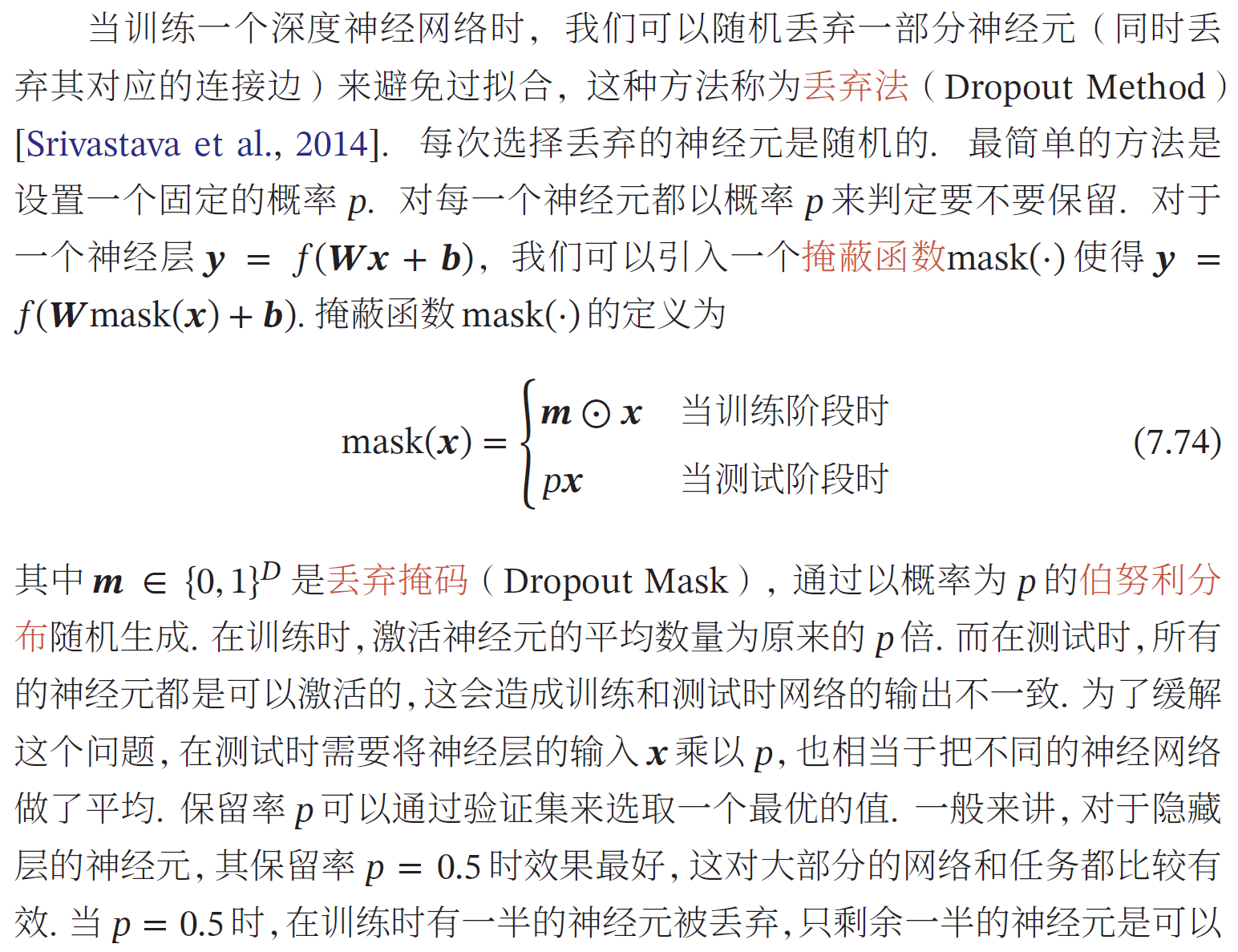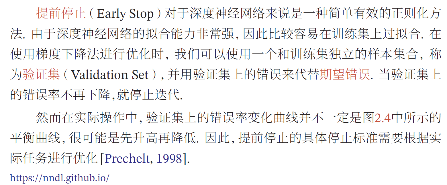 **泛化问题:**由于深度神经网络的复杂度比较高,并且拟合能力很强,很容易在训练集上产生过拟合.因此在训练深度神经网络时,同时也需要通过一定的正则化方法来改进网络的泛化能力.