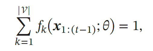 深度序列模型(Deep Sequence Model)是指利用神经网络模型来估计条件概率𝑝𝜃(𝑥𝑡|𝒙1∶(𝑡−1)).假设一个神经网络𝑓(⋅; 𝜃),其输入为历史信息ℎ𝑡̃ = 𝒙1∶(𝑡−1),输出为词表𝒱 中的每个词𝑣𝑘(1 ≤ 𝑘 ≤ |𝒱|) 出现的概率,并满足