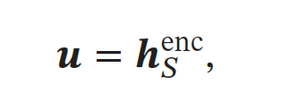 其中𝑓enc(⋅) 为编码循环神经网络,可以为LSTM 或GRU,其参数为𝜃enc,𝒆𝑥 为词𝑥的词向量.解码器的初始隐藏状态 直接设置为编码器产出的上下文向量 u。从上下文向量 u开始,逐步生成输出序列。