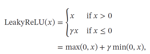 带泄露的ReLU(Leaky ReLU)在输入𝑥 < 0 时,保持一个很小的梯度𝛾.这样当神经元非激活时也能有一个非零的梯度可以更新参数,避免永远不能被激活