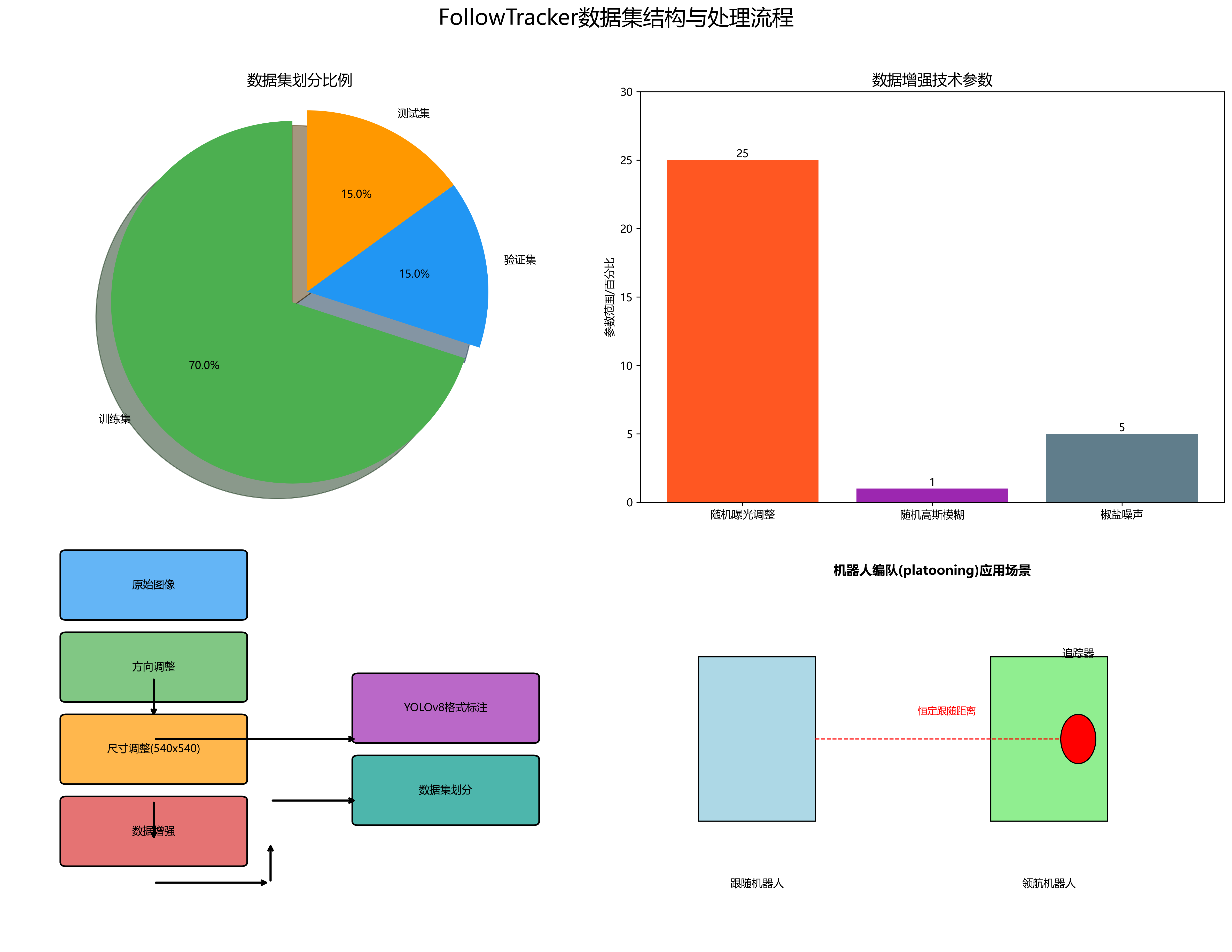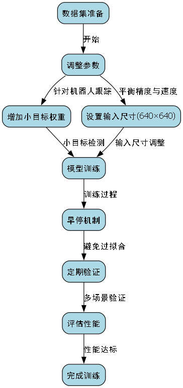 这些数据增强技术可以有效扩充数据集规模,提高模型对不同环境变化的适应能力。在实际应用中,我们特别关注了机器人追踪场景中的特殊挑战,如低光照环境、目标快速运动、部分遮挡等情况,针对性地设计了数据增强策略,使模型能够更好地应对这些挑战。例如,我们通过模拟不同光照条件下的图像,增强模型在低光照环境下的检测能力;通过添加运动模糊效果,提高模型对快速运动目标的捕捉能力。这种针对性的数据增强策略,使得模型在实际应用中表现出更好的鲁棒性和适应性。