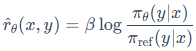 更好)更大的权重,从而集中火力修正模型的"判断失误"。这个隐式奖励由下式定义: