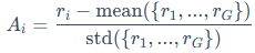 组内优势估计(Group Relative Advantage): 利用奖励模型或验证器对这组输出打分。关键在于,GRPO不使用额外的Critic来预测基线,而是直接使用组内奖励的均值作为动态基线。这种方法不仅显著降低了显存占用(无需维护与策略模型同等规模的Critic),还有效利用了组内对比来降低方差。对于每个输出,其优势