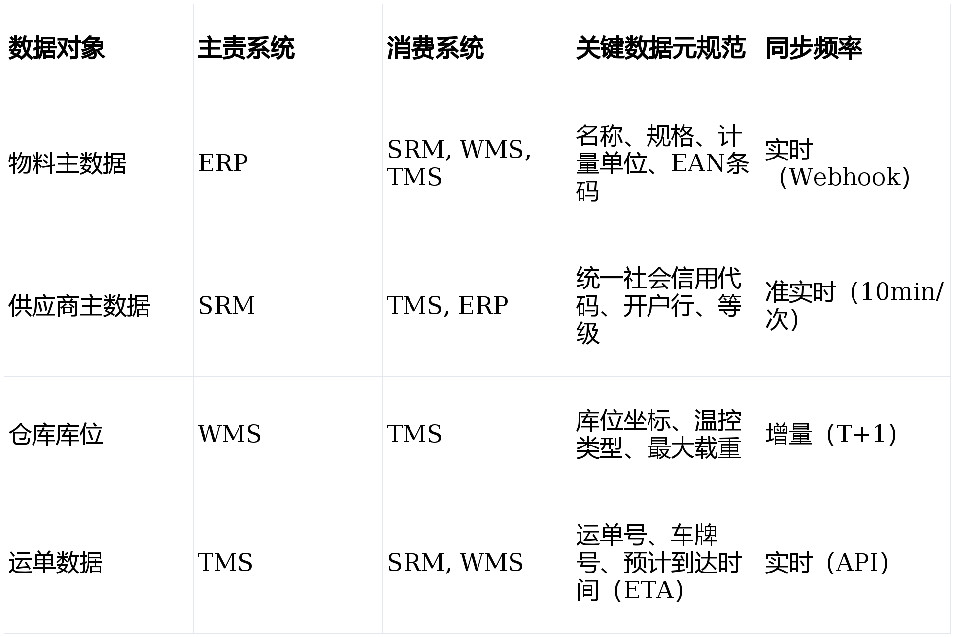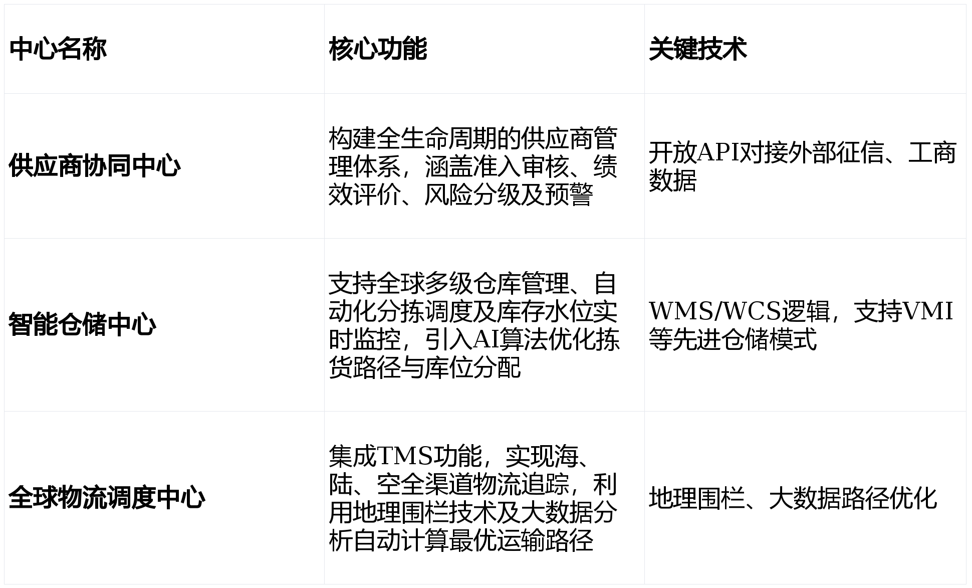 - 数据标准中心:统一全链条的物料编码、供应商编码及地理位置信息,消除数据孤岛