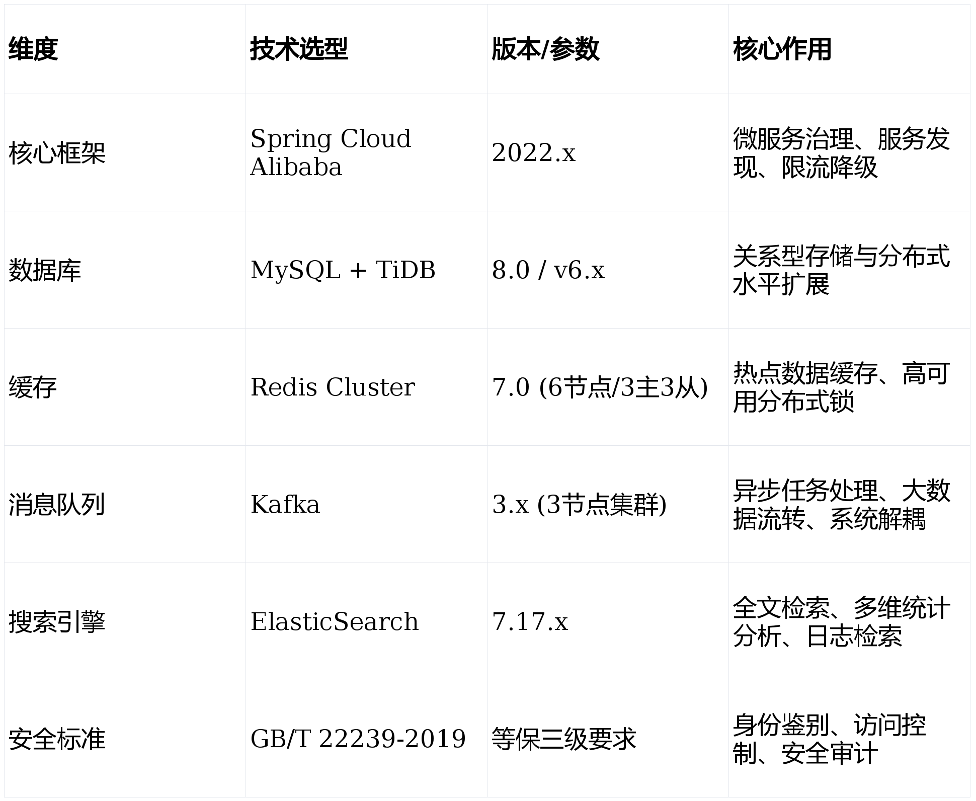系统全面拥抱云原生技术栈,确保架构的弹性扩展与持续演进: