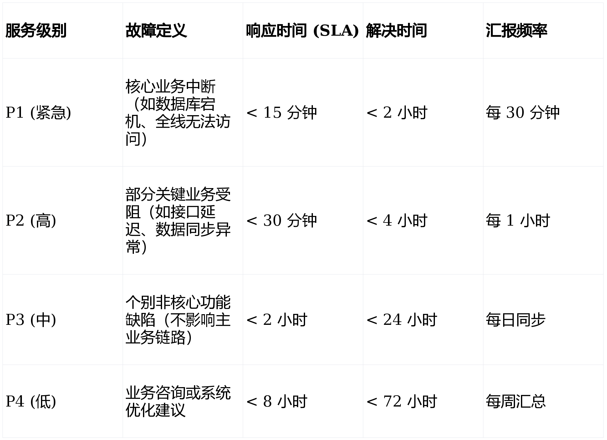 - L1级(基础支持):负责日常业务咨询、账号权限管理及已知问题的快速解答