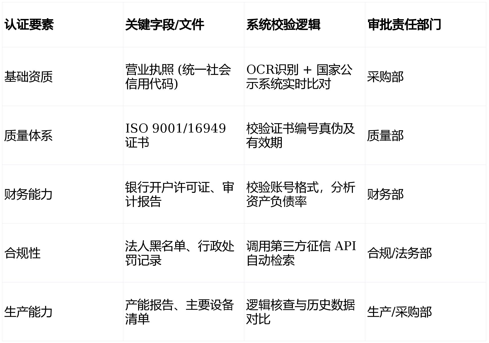 - 资质文件上传:按系统预设模板上传营业执照、ISO 9001/14001、IATF 16949、特种设备制造许可证、近三年审计报告及产能报告