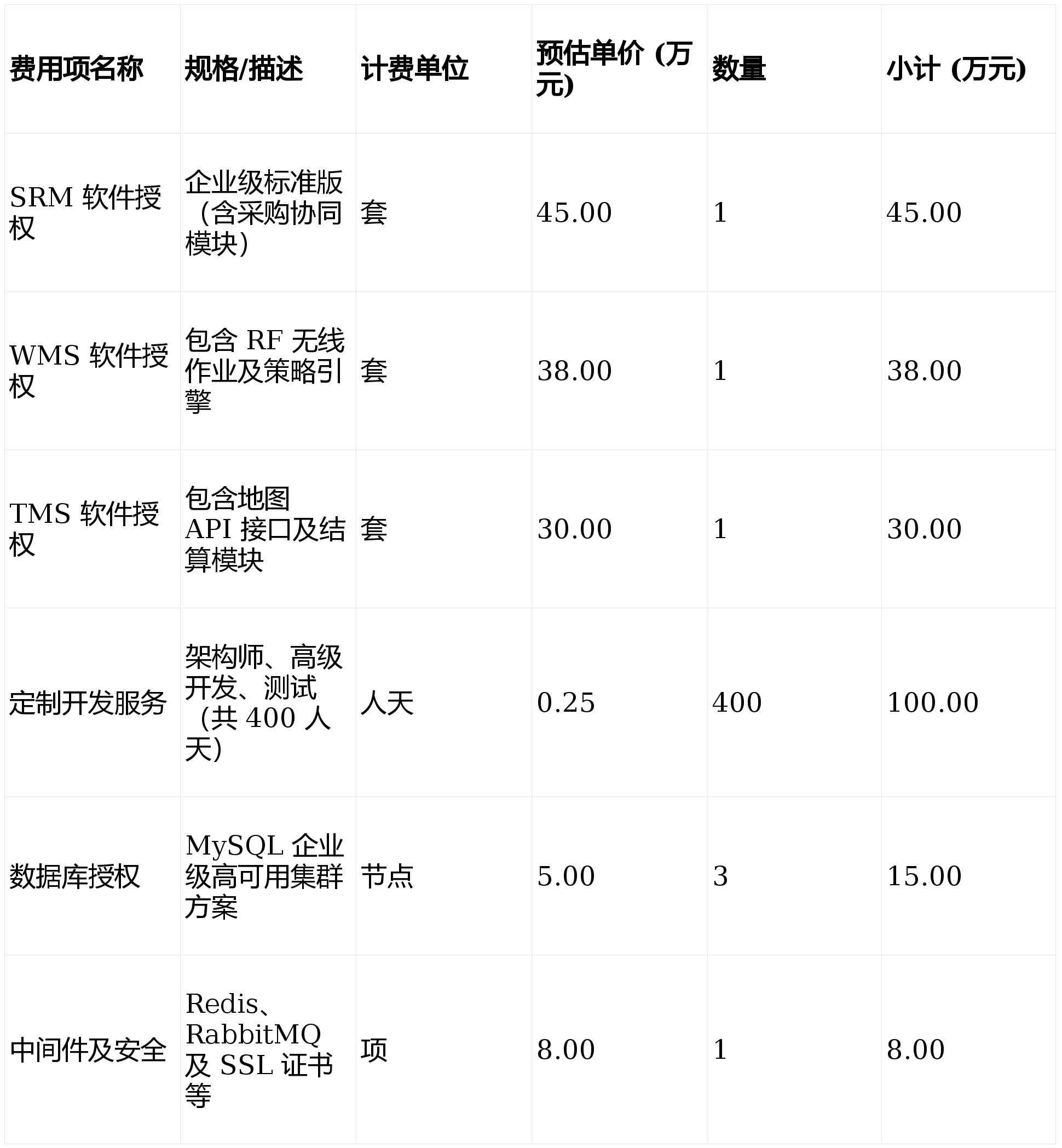 - 系统集成费:20.00万元(ERP/MES接口开发与联调)
