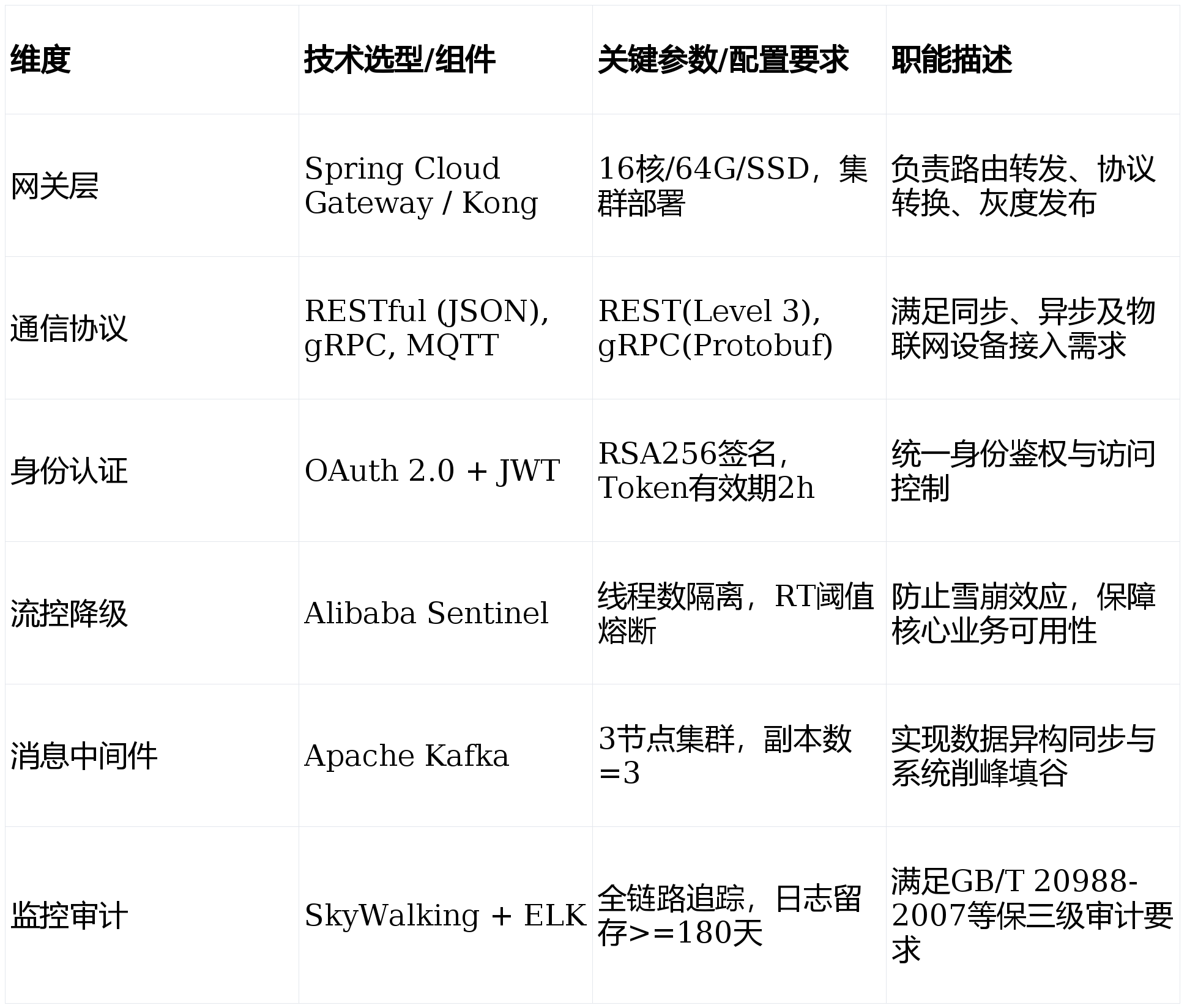 - 消息中间件:Kafka 集群,承载每秒数万次的传感器数据写入