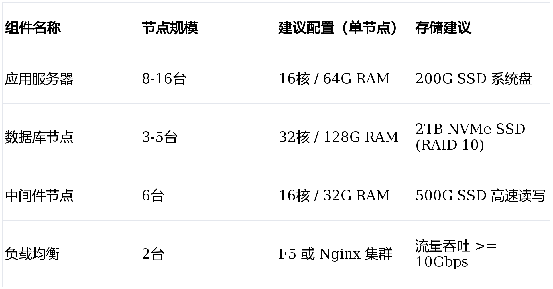 硬件配置标准: