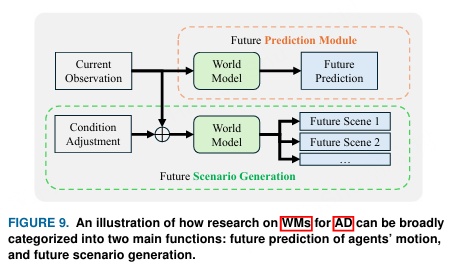 图9. 说明了针对AD的工作记忆研究如何可以大致分为两大功能:对智能体运动的未来预测,以及未来场景生成。