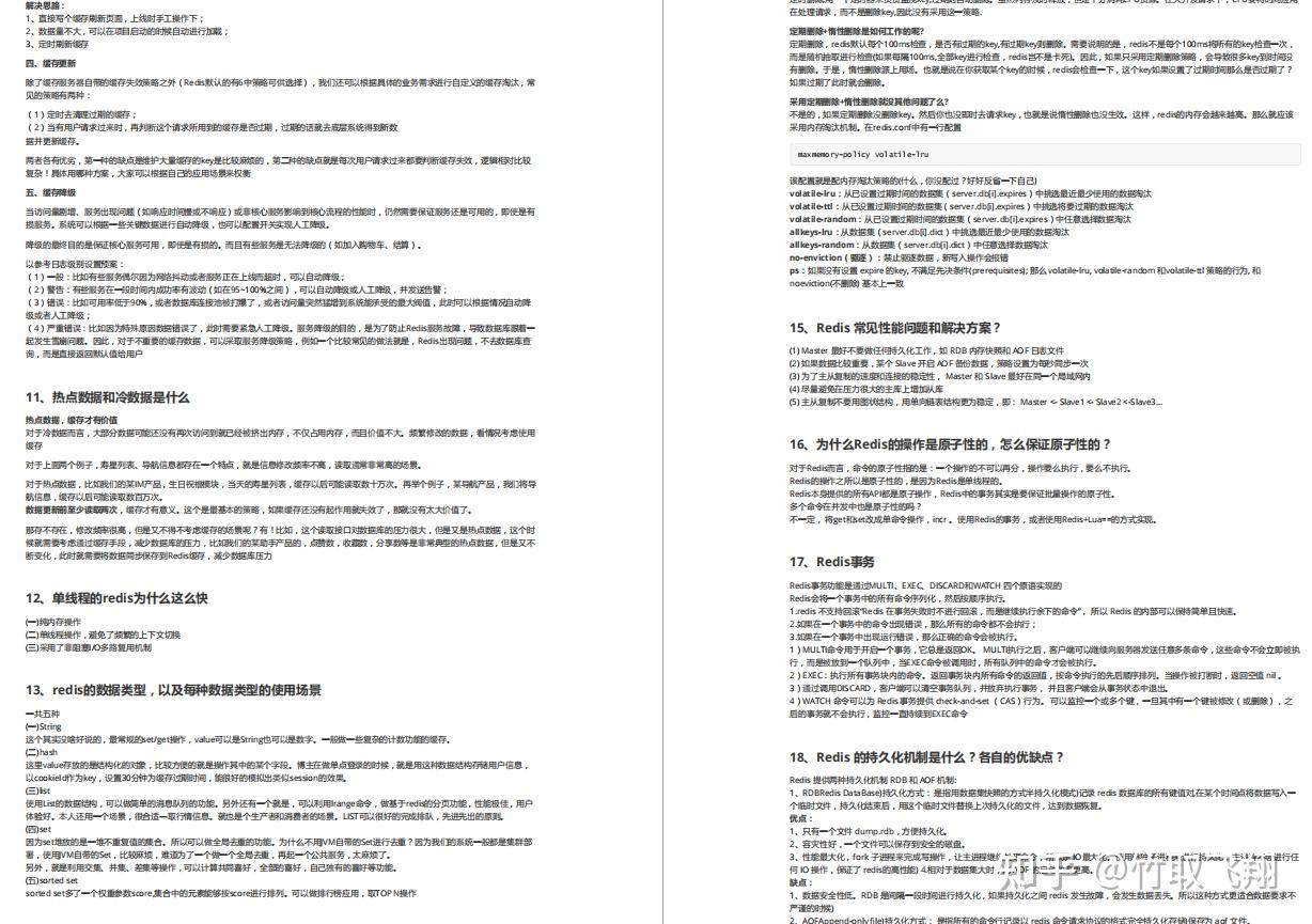 REDIS 篇面试题中的知识点:REDIS 部署、REDIS 的 VALUE 类型、REDIS 的发布订阅、REDIS 的 MODULE 与布隆过滤器模块、REDIS 的 LUA 脚本、REDIS 的持久化方案、REDIS 的主从复制方案、REDIS 的 SENTINEL、REDIS 的同步机制、REDIS 的新可靠性配置等等