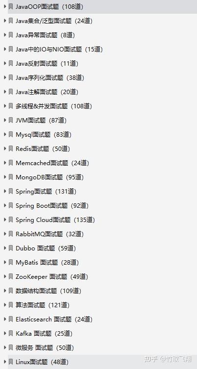 从java基础语法、JVM、多线程到MySQL、spring、springboot、springcloud,再有dubbo、mybatis、redis、网络底层IO、Linux、MQ、zookeeper、netty、大数据、数据结构与算法、再到设计模式等等,可谓是非常之全!