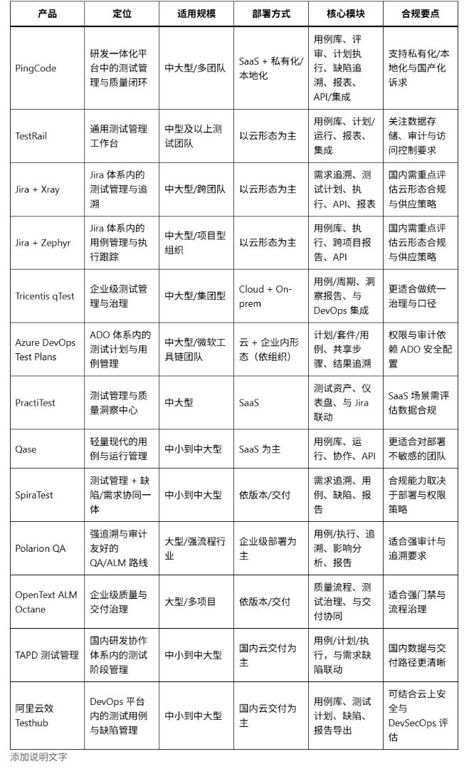 1.测试用例管理平台怎么选? 答:先看三条主线:用例库复用能力、需求---用例---缺陷追溯是否闭环、测试计划与执行数据能否形成质量度量;再结合团队规模与是否需要私有化部署做取舍。