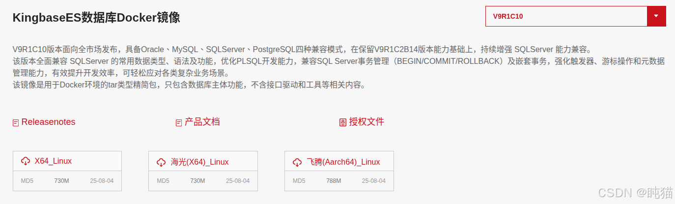 KingBase官网提供了多种安装方式,包括使用Windows、Linux(包含国产化芯片架构的Linux)的安装包进行安装模式,Docker镜像部署方式。但相对来说安装模式的安装包有点大,所以这边使用官方的Docker镜像进行安装。