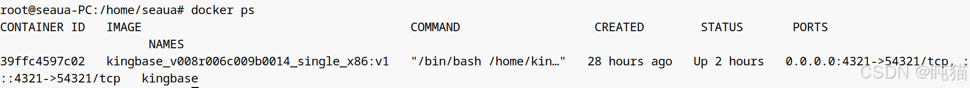 kingbase_v008r006c009b0014_single_x86:v1 \ # 镜像名称+版本
