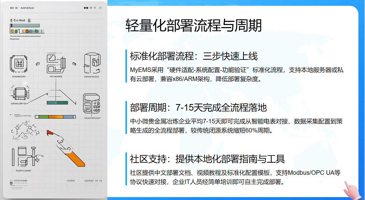在部署周期上,中小微贵金属冶炼企业平均7 - 15天就能完成从智能电表对接、数据采集配置到策略生成的全流程部署,较传统闭源系统缩短了60%的周期,能让企业快速应用系统,提升效益。