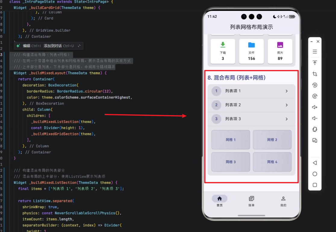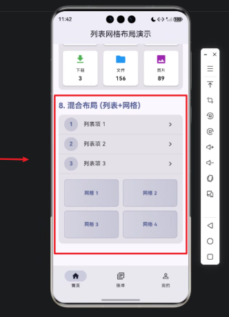 本文通过一个完整的示例,系统性地介绍了在 Flutter × OpenHarmony 场景下,如何在同一个容器中实现 列表 + 网格的混合布局 。