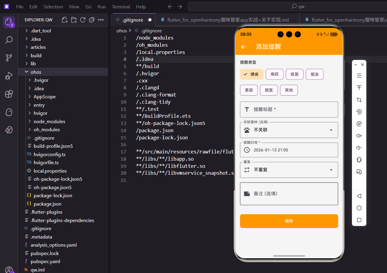 养猫需要记住的事情太多了,喂食、驱虫、疫苗、美容...稍不注意就会忘记。今天我们来实现一个添加提醒的功能,帮助铲屎官们管理各种待办事项。