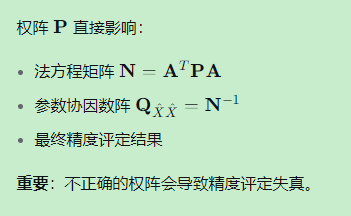重要:不正确的权阵会导致精度评定失真。
