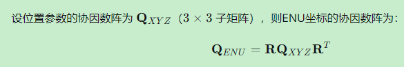 在GNSS中,我们通常需要将地心地固坐标系(ECEF)下的精度转换到当地站心坐标系(ENU)。