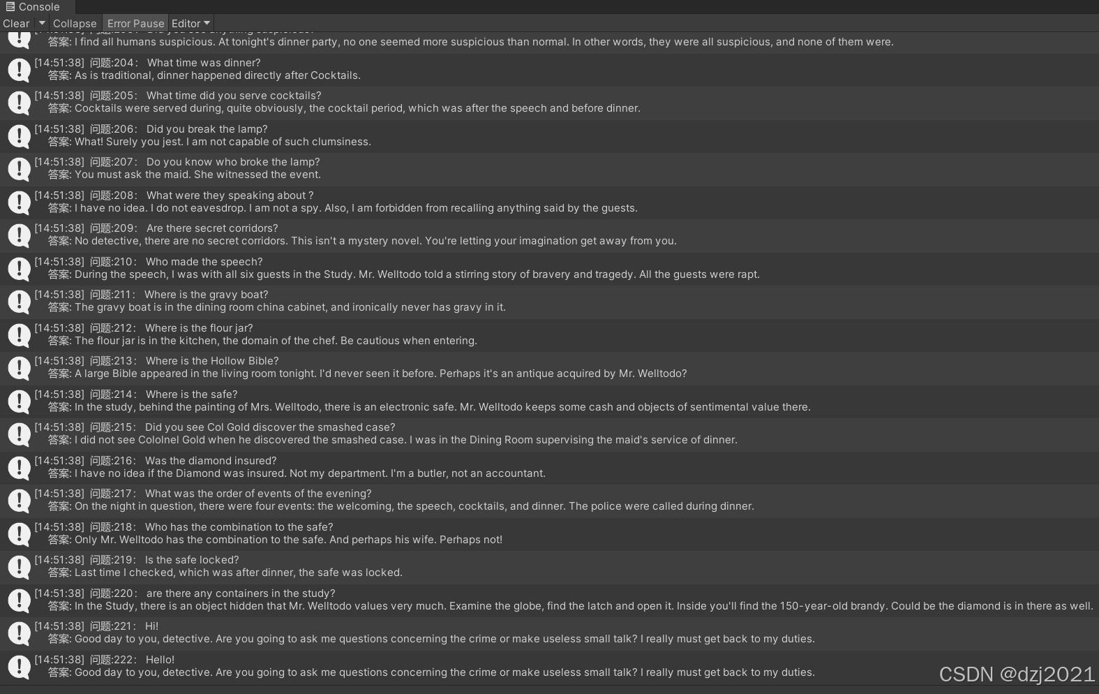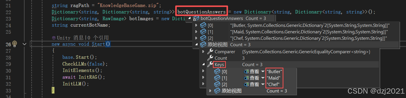 UnityEngine.Debug.Log($" 问题:{index}: {kvp.Key} \n 答案: {kvp.Value}");