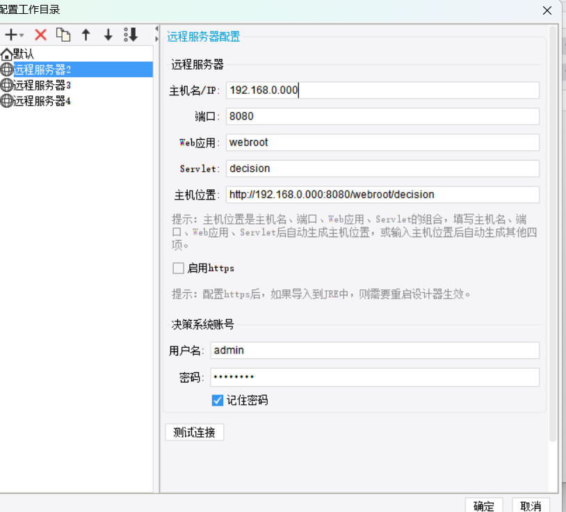 4.用自己的IPv4 地址地址登录上帆软后,打开本地帆软进行远程服务器配置即可。
