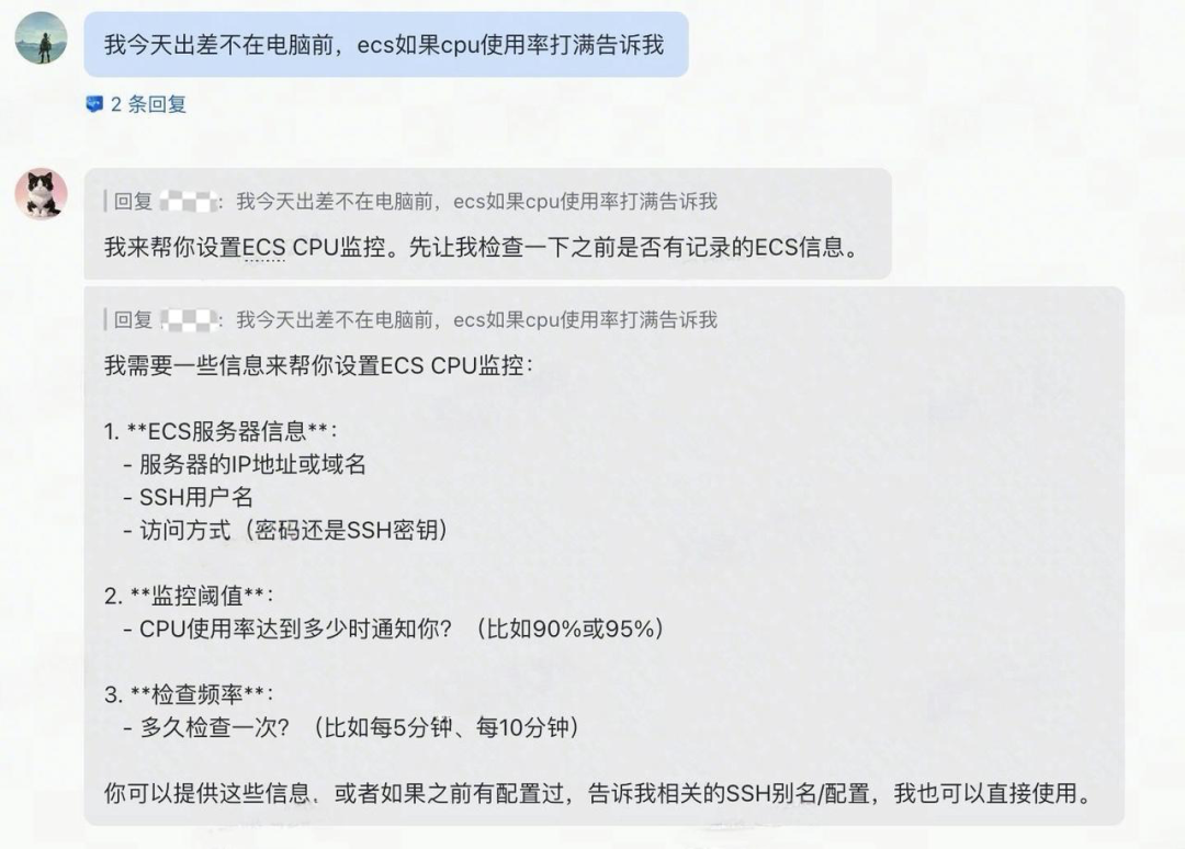 现在文件处理、数据查询、代码调试、信息拉取......都可以通过飞书一句话指令,交给云端 Moltbot 自动完成。它就在那里,不掉线、不抱怨,随时准备接手你的下一个任务。